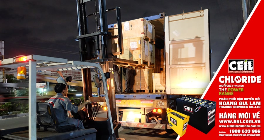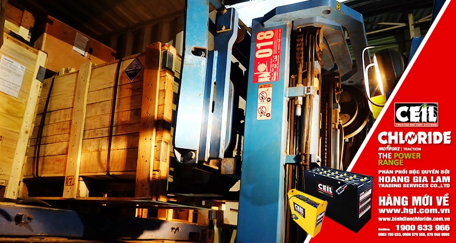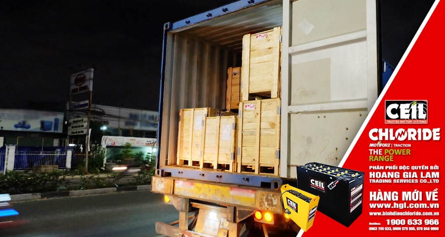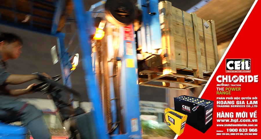 Nhằm đáp ứng nhu cầu gia tăng sản xuất vào dịp cuối năm, container bình điện xe nâng CEIL (CHLORIDE) lại tiếp tục về Việt Nam. Công Ty TNHH MTV TM DV Hoàng Gia Lâm (HGL Co.,Ltd) luôn mong muốn khi “Khách cần bình điện xe nâng – Hoàng Gia Lâm có“.